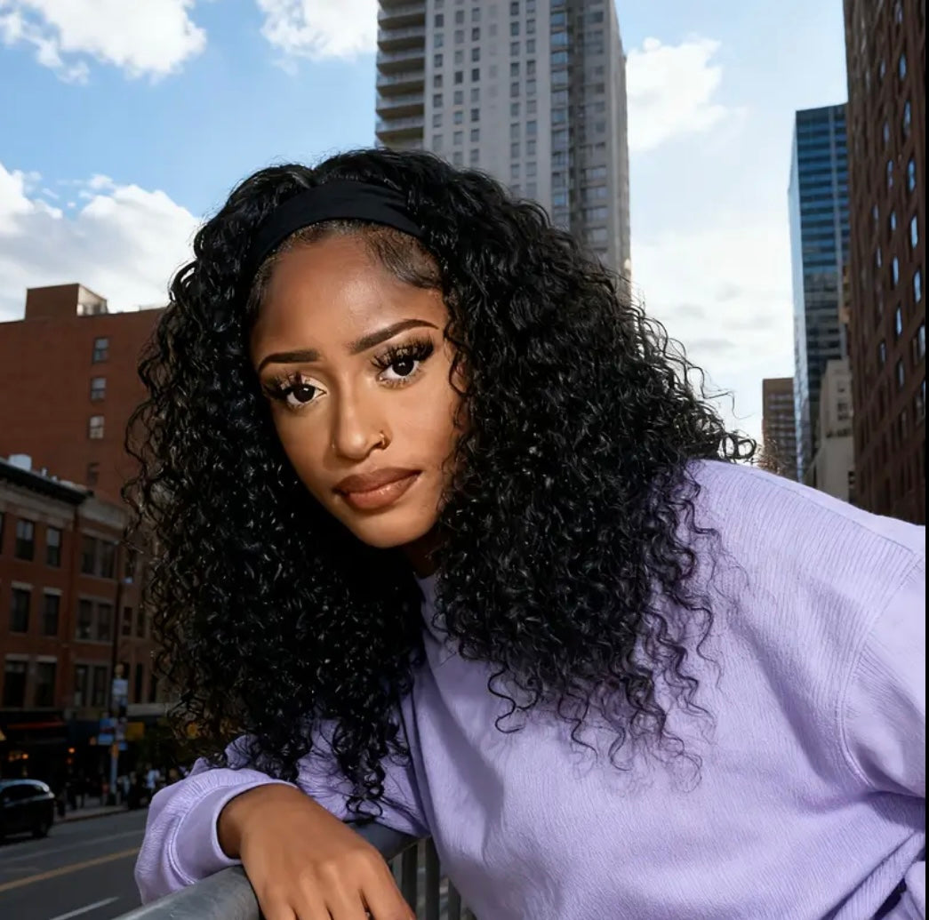 Wig for Women - Black Body Wave Human hair blend. Hair with Headband, No Lace, Perfect for Cosplay, Halloween, Parties & Everyday Use, Party Hairpiece, No Maintenance Needed