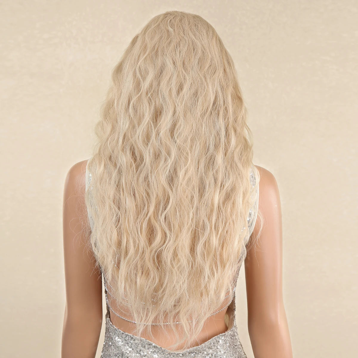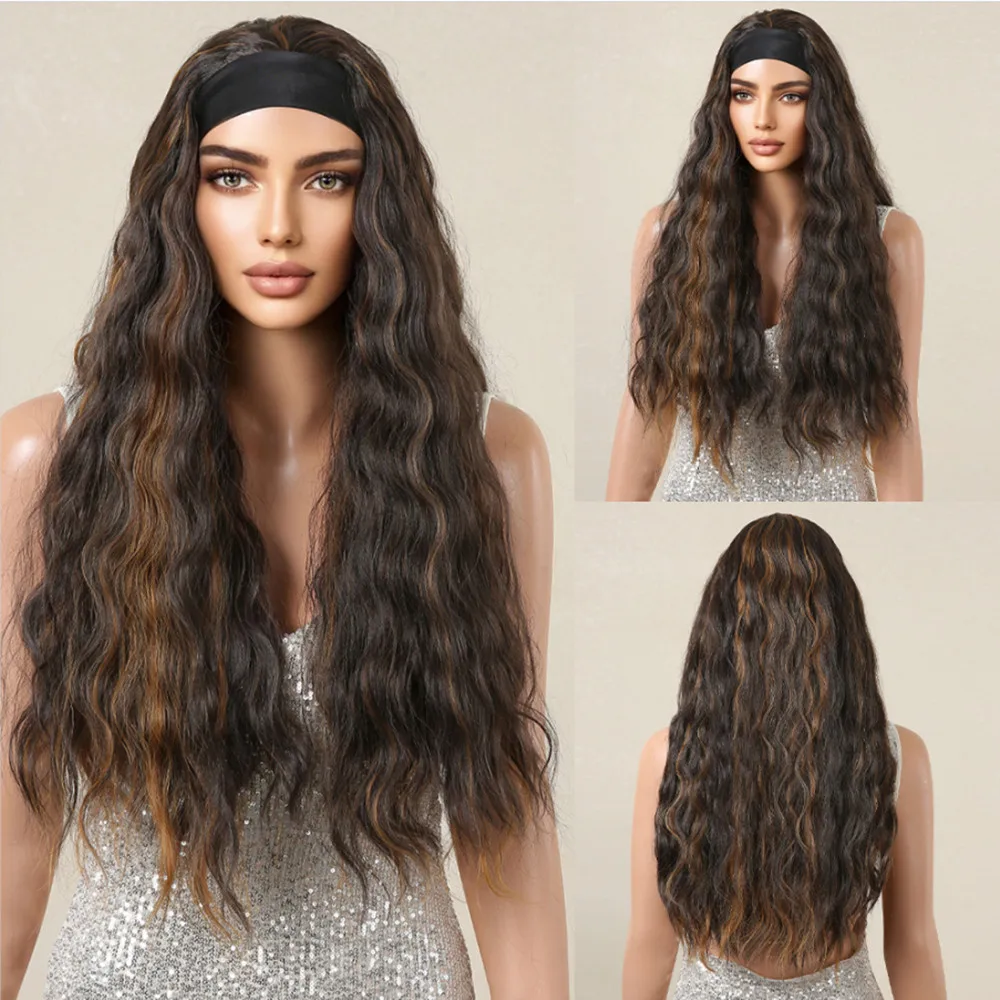 Blonde Headband Synthetic Wigs Long Afro Kinky Curly Golden Hair Wig for Black Women Daily Use Water Wave Wig Heat Resistant