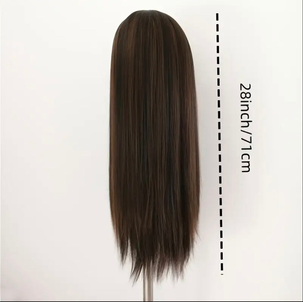 Women's Ice Sliky Fiber Straight Hair Wig Headpiece with Breathable Rose Net Cap - Natural Brown