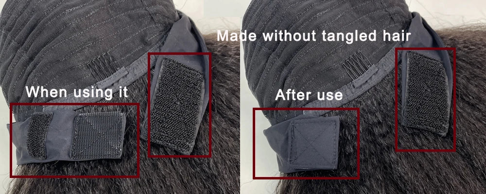 【Wig cap】--The inner net adopts breathable rose net, which is comfortable to wear. There are two adjustment straps on both sides of the wig, which can be wound to a fixed position to suit different head shapes.